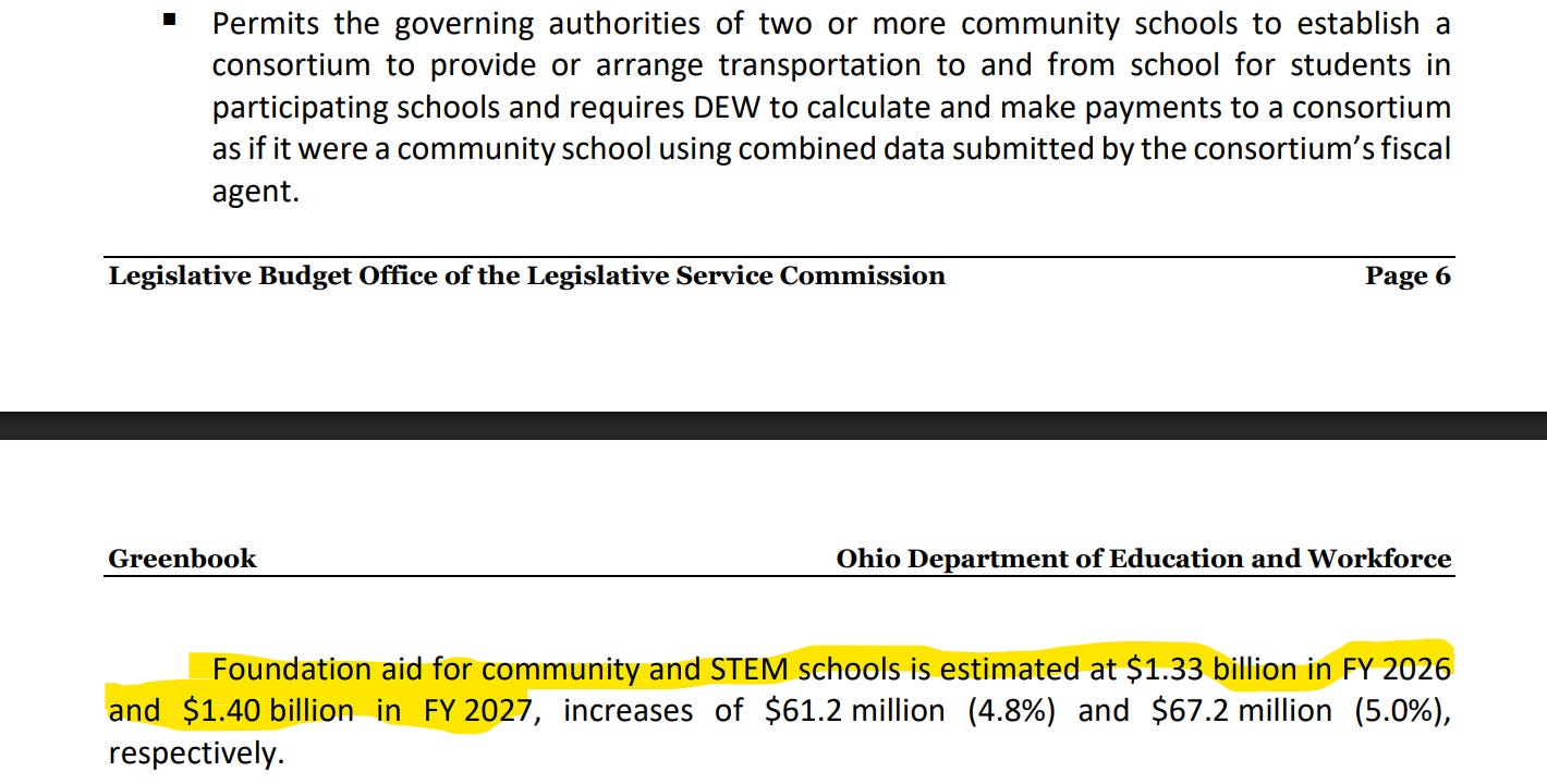 It will be interesting to see if the state legislature decides to address this massive increase in Charter School funding since it’s so much more than what the Legislative Service Commission predicted last year.