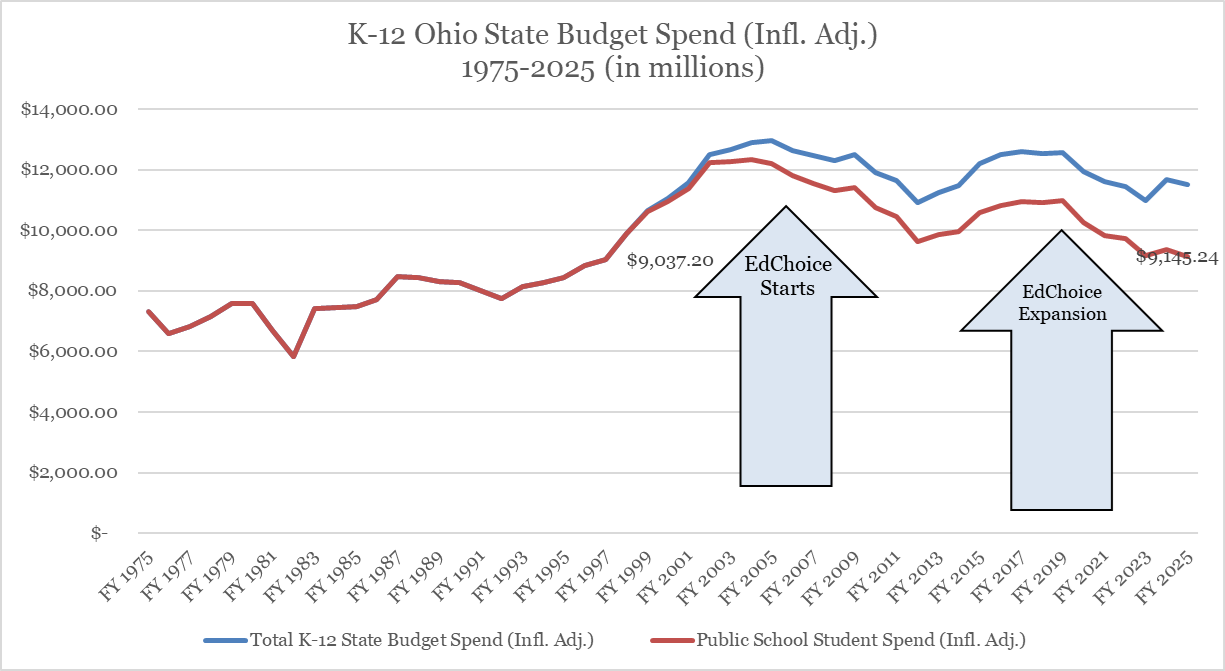 In fact, I demonstrated not long ago that, adjusted for inflation, Ohio is spending less state money on public education today than at any point since 1997.