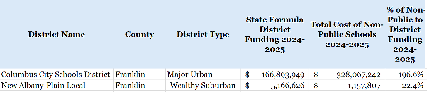 The state provides privately run schools taking New Albany kids about 22.4 percent of the money New Albany kids receive in their public schools. Still way too much. But the economic impact isn’t even in the same ballpark as the impact on Columbus.