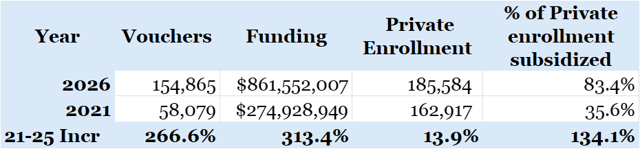 And the funding has vastly outstripped the rate of unconstitutional voucher growth — resulting in a nearly 20 percent per pupil funding increase for private schools.